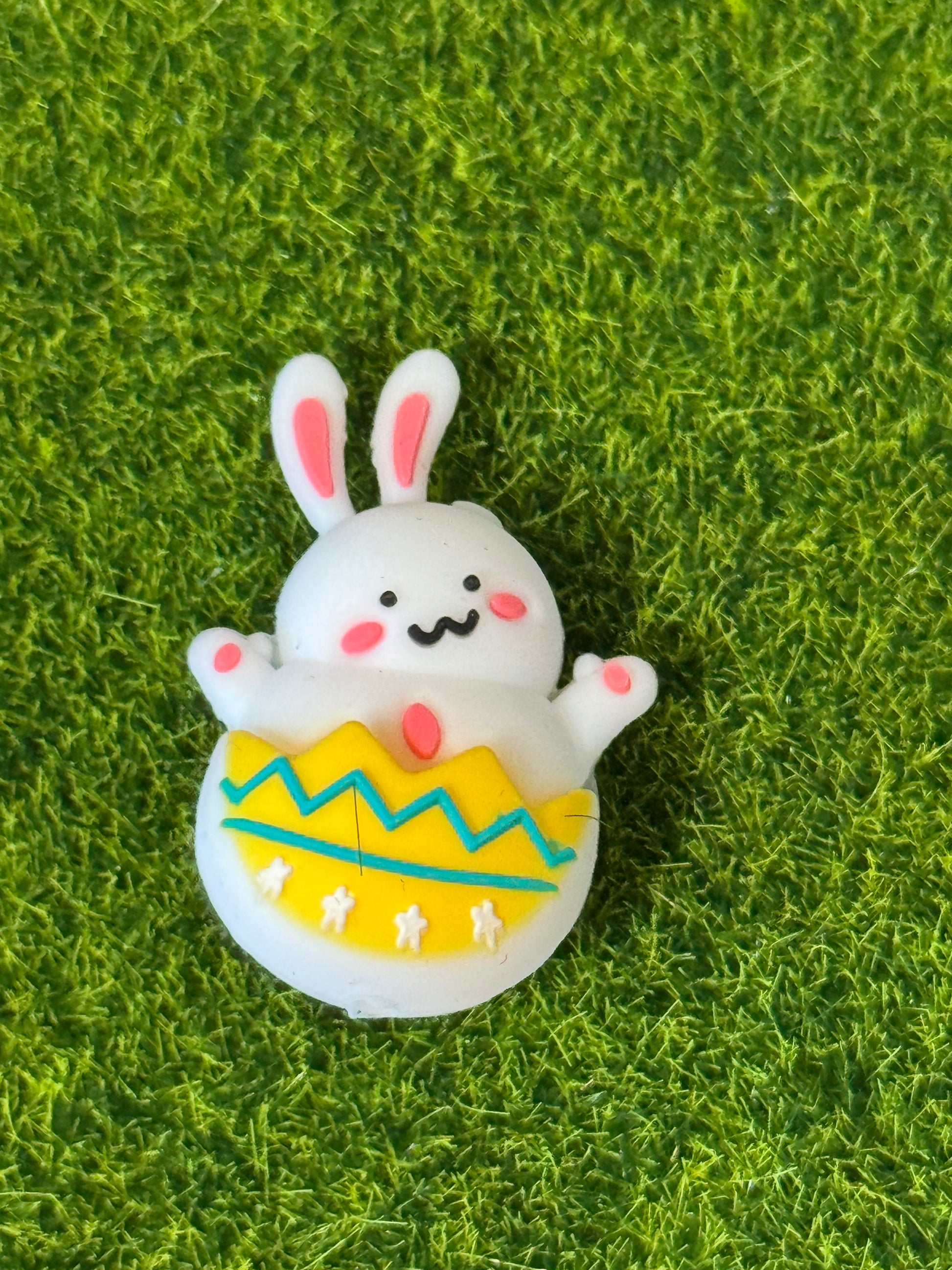 Bunny in yellow egg silicone focal bead -1